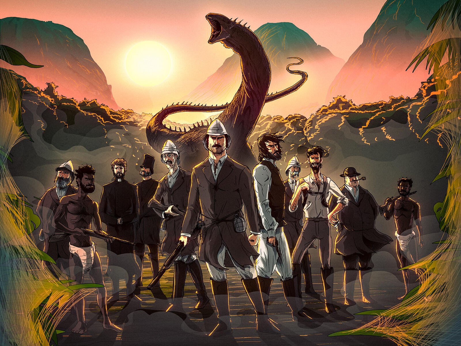A saga de BD CONGO relata a história de uma expedição portuguesa que embrenha por uma jornada perigosa, onde críptidos congoleses como o infame Mokele Mbembe, a aranha gigante J’ba Fofi e o temível Kasai Rex percorrem pela vasta biodiversidade das florestas e pântanos inóspitos da região.